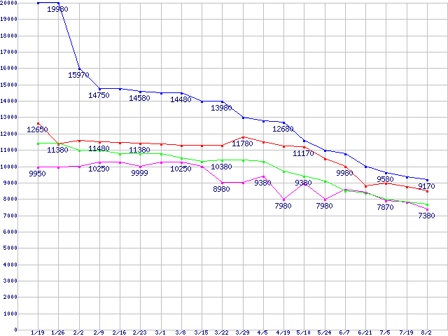 | ※製品名をクリックすると個別のグラフを表示します ※点線部は販売店が確認できなかった、または調査データがないことを示します | |