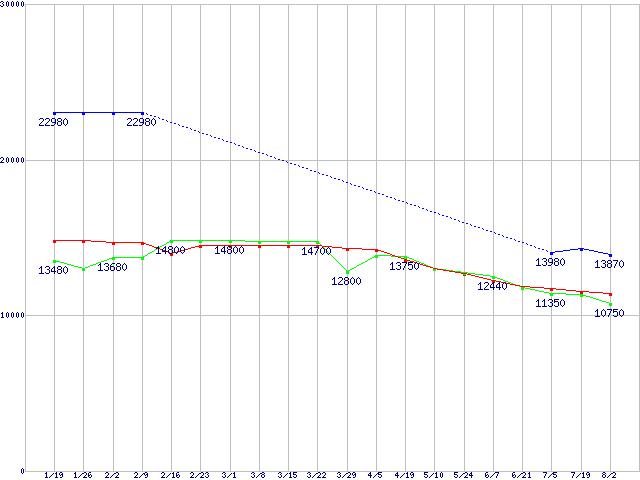 | ※製品名をクリックすると個別のグラフを表示します ※点線部は販売店が確認できなかった、または調査データがないことを示します | |