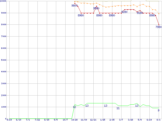 FX-4100 (3.6GHz,L2 4MB,L3 8MB,TDP 95W)の価格推移↑前グラフ↓次グラフ(2011年5月20日〜2012年8月1日)※このグラフは過去のデータも税率5%相当に調整した税込み相当額のグラフです。●関連グラフCPU主要製品の最安値推移CPU主要製品(最安値1万円未満)の最安値推移AMD系CPUの最安値推移Socket AM3+ (HyperTransport,4Core)の最安値推移●凡例最安値(点線部は販売店未確認または未調査)平均値最高値ショップ数