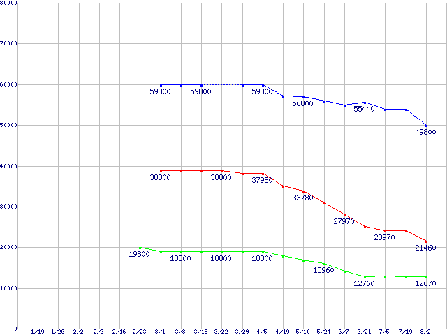 | ※製品名をクリックすると個別のグラフを表示します ※点線部は販売店が確認できなかった、または調査データがないことを示します | |
