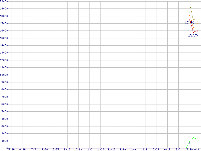 PX-256M5S (256GB,MLC)の価格推移↑前グラフ(2011年5月26日〜2012年8月9日)※このグラフは過去のデータも税率5%相当に調整した税込み相当額のグラフです。●関連グラフHDD/SSD主要製品の最安値推移HDD/SSD主要製品(最安値1万5千円〜2万円未満)の最安値推移HDD 250〜300GB未満の最安値推移M5S (SSD,6Gbps,2.5インチ,リード520MB/s・ライト390〜90MB/s)の最安値推移●凡例最安値(点線部は販売店未確認または未調査)平均値最高値ショップ数