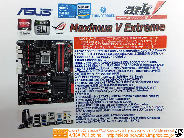 AKIBA PC Hotline!今週見つけた新製品:LGA1155マザーボード [拡大画像]ASUS Maximus V Extreme ASUS Maximus V Formula[記事に戻る]→次の画像