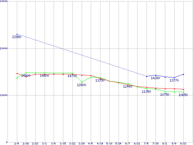 | ※製品名をクリックすると個別のグラフを表示します ※点線部は販売店が確認できなかった、または調査データがないことを示します | |