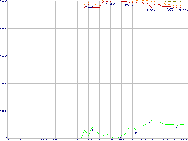 Core i7-3930K (3.20GHz,12MB)の価格推移↑前グラフ↓次グラフ(2011年6月10日〜2012年8月22日)※このグラフは過去のデータも税率5%相当に調整した税込み相当額のグラフです。●関連グラフCPU主要製品の最安値推移CPU主要製品(最安値3万円〜6万円未満)の最安値推移Intel系CPUの最安値推移LGA2011 (Hyper-Threading,TDP 130W)の最安値推移●凡例最安値(点線部は販売店未確認または未調査)平均値最高値ショップ数