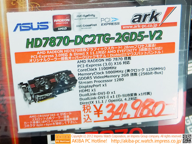 AKIBA PC Hotline!今週見つけた新製品:ビデオカード [拡大画像]ASUS HD7870-DC2TG-2GD5-V2 ASUS HD7870-DC2-2GD5-V2[記事に戻る]→次の画像