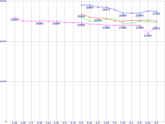 | ※製品名をクリックすると個別のグラフを表示します ※点線部は販売店が確認できなかった、または調査データがないことを示します | |