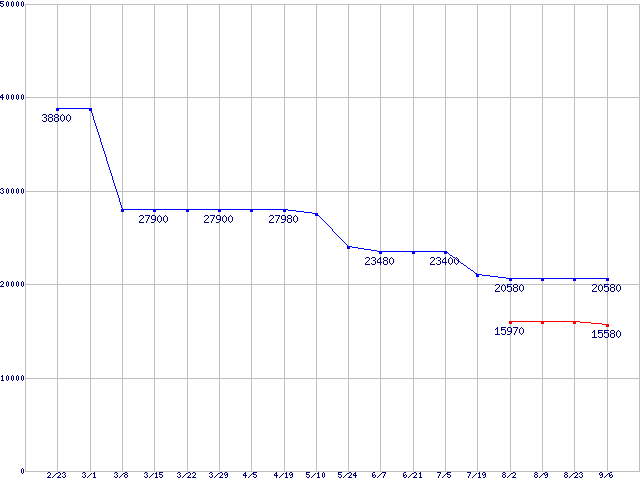 | HDD 200〜250GB未満の最安値推移 |