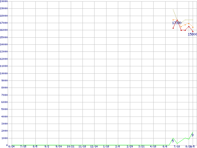 Core i5-3470S (2.90GHz,TDP 65W)の価格推移↑前グラフ↓次グラフ(2011年6月24日〜2012年9月5日)※このグラフは過去のデータも税率5%相当に調整した税込み相当額のグラフです。●関連グラフCPU主要製品の最安値推移CPU主要製品(最安値1万円〜2万円未満)の最安値推移Intel系CPUの最安値推移LGA1155 (Smart Cache 6MB,Quad Core,GPU内蔵)の最安値推移●凡例最安値(点線部は販売店未確認または未調査)平均値最高値ショップ数
