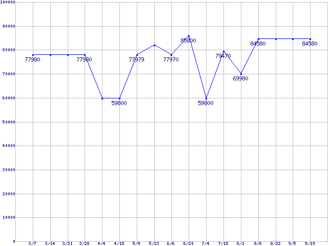 | CPU主要製品(最安値6万円以上)の最安値推移 |