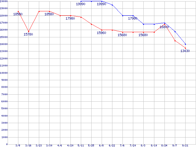 | ※製品名をクリックすると個別のグラフを表示します ※点線部は販売店が確認できなかった、または調査データがないことを示します |
