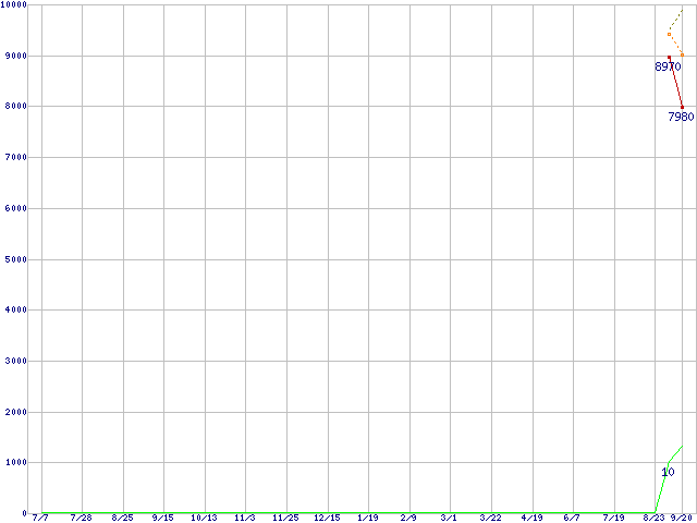DT01ACA200 (2TB,64MB)の価格推移↑前グラフ↓次グラフ(2011年7月7日〜2012年9月20日)※このグラフは過去のデータも税率5%相当に調整した税込み相当額のグラフです。●関連グラフHDD/SSD主要製品の最安値推移HDD/SSD主要製品(最安値1万円未満)の最安値推移HDD 2TB〜2.5TB未満の最安値推移DT01ACAxxx (7200rpm,6Gb/s)の最安値推移●凡例最安値(点線部は販売店未確認または未調査)平均値最高値ショップ数