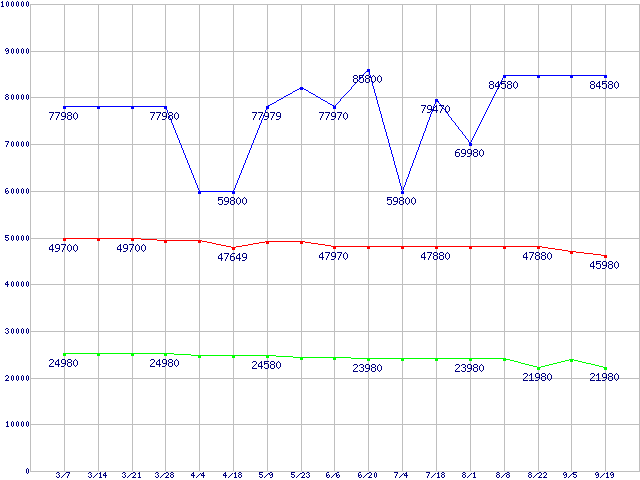 | ※製品名をクリックすると個別のグラフを表示します ※点線部は販売店が確認できなかった、または調査データがないことを示します | |