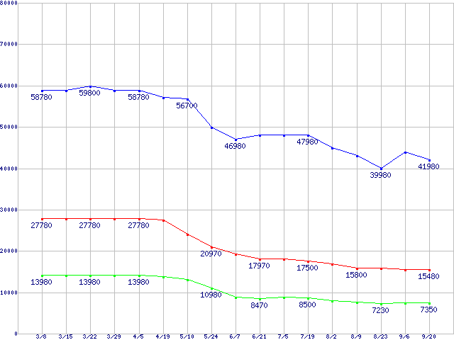 | ※製品名をクリックすると個別のグラフを表示します ※点線部は販売店が確認できなかった、または調査データがないことを示します | |