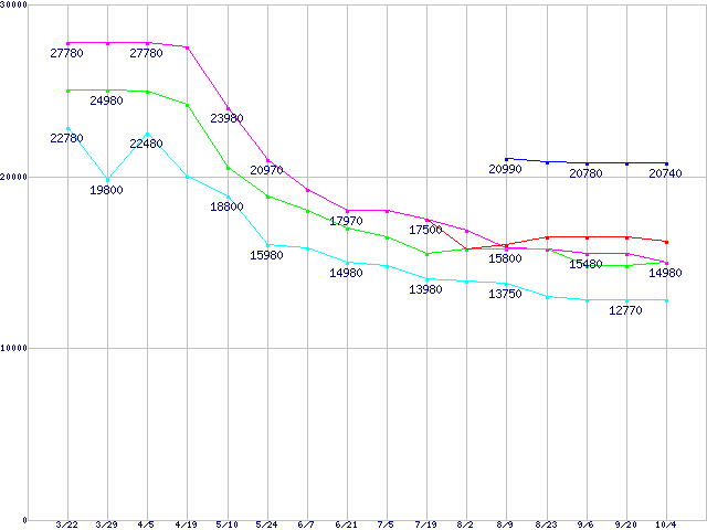 | ※製品名をクリックすると個別のグラフを表示します ※点線部は販売店が確認できなかった、または調査データがないことを示します | |
