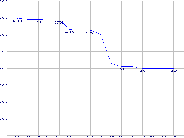 | HDD 400〜500GB未満の最安値推移 |