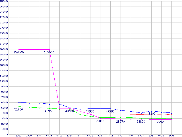 | ※製品名をクリックすると個別のグラフを表示します ※点線部は販売店が確認できなかった、または調査データがないことを示します | |
