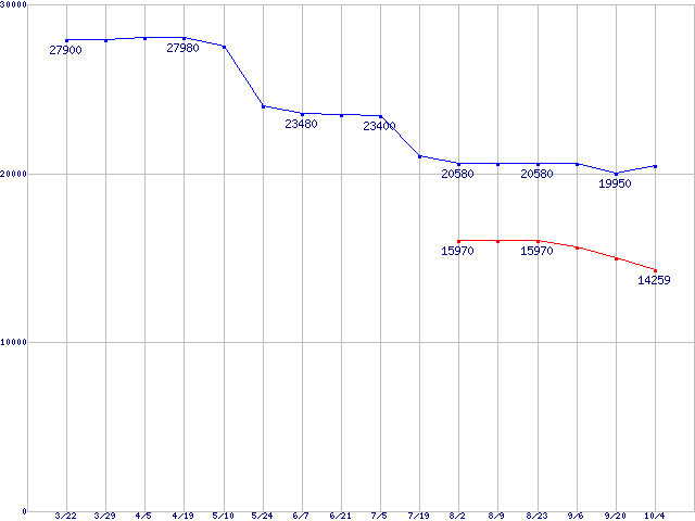 | ※製品名をクリックすると個別のグラフを表示します ※点線部は販売店が確認できなかった、または調査データがないことを示します |