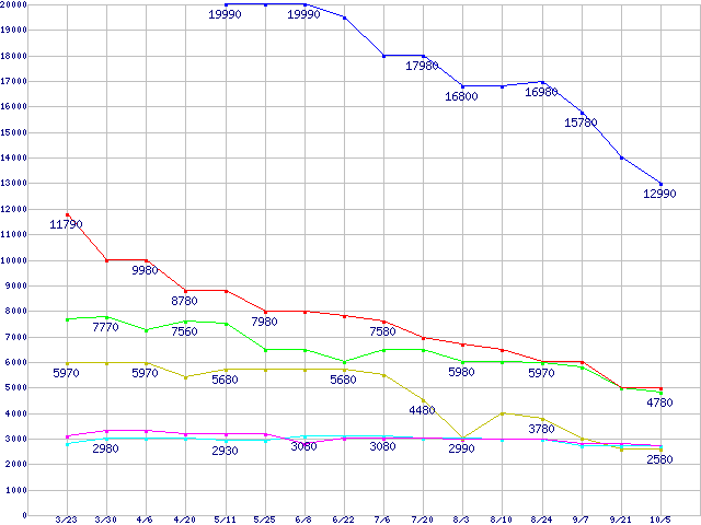 | ※製品名をクリックすると個別のグラフを表示します ※点線部は販売店が確認できなかった、または調査データがないことを示します | |