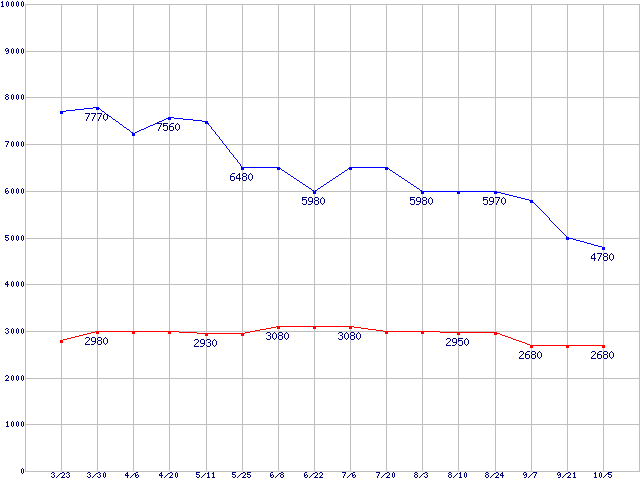 | ※製品名をクリックすると個別のグラフを表示します ※点線部は販売店が確認できなかった、または調査データがないことを示します |