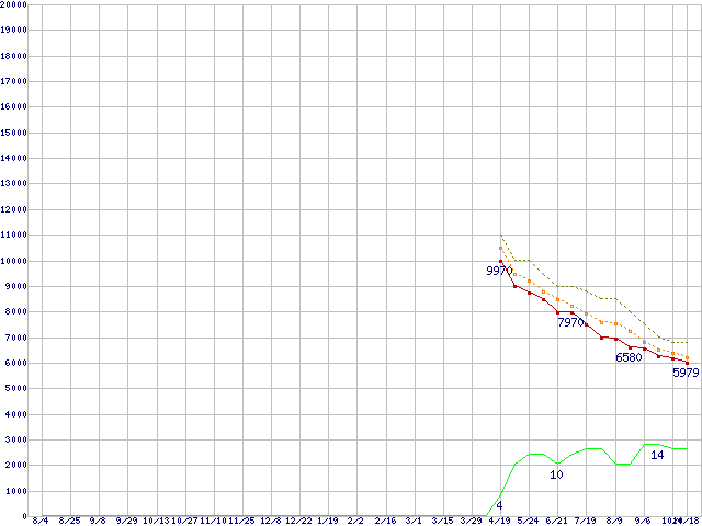 MQ01ABD100 (1TB,8MB)の価格推移↑前グラフ↓次グラフ(2011年8月4日〜2012年10月18日)※このグラフは過去のデータも税率5%相当に調整した税込み相当額のグラフです。●関連グラフHDD/SSD主要製品の最安値推移HDD/SSD主要製品(最安値1万円未満)の最安値推移HDD 1TB〜1.5TB未満の最安値推移MQ01ABDxxx (5400rpm,3Gb/s,2.5インチ)の最安値推移●凡例最安値(点線部は販売店未確認または未調査)平均値最高値ショップ数