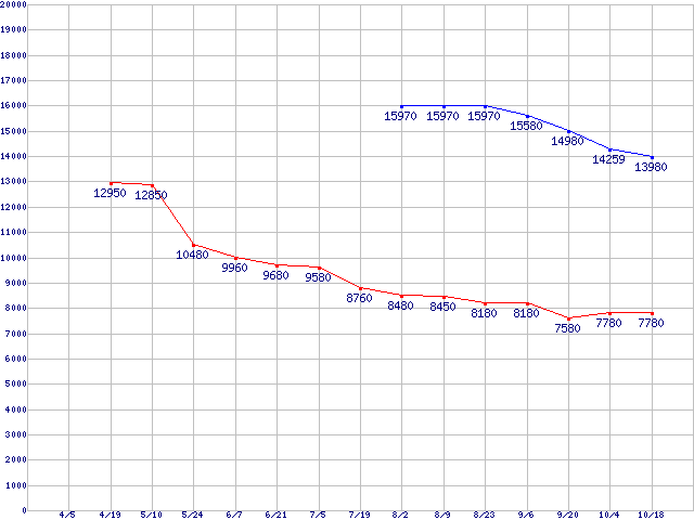 | ※製品名をクリックすると個別のグラフを表示します ※点線部は販売店が確認できなかった、または調査データがないことを示します |