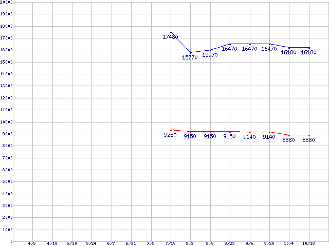 | ※製品名をクリックすると個別のグラフを表示します ※点線部は販売店が確認できなかった、または調査データがないことを示します |