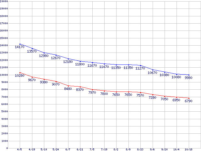| ※製品名をクリックすると個別のグラフを表示します ※点線部は販売店が確認できなかった、または調査データがないことを示します |