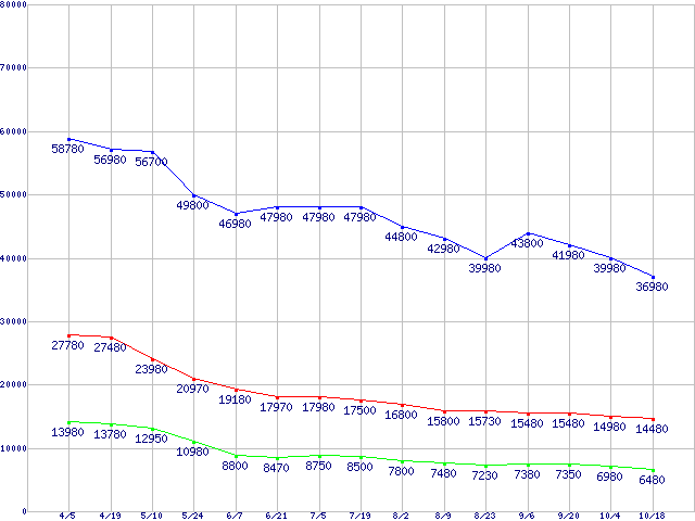 | ※製品名をクリックすると個別のグラフを表示します ※点線部は販売店が確認できなかった、または調査データがないことを示します | |