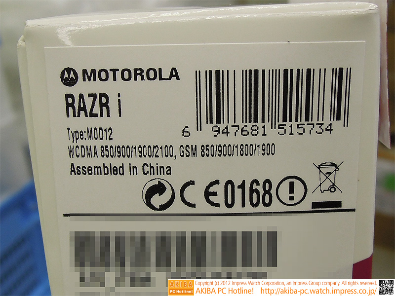 [拡大画像]スマホにも「intel inside」、Intel製CPUのAndroidスマホが直輸入、モトローラ「RAZR i」