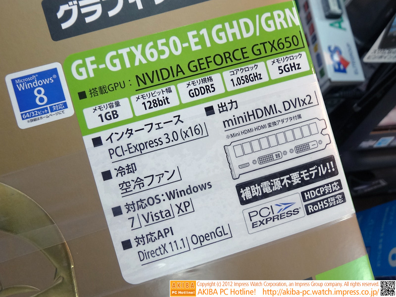 玄人志向 GF-GTX650-E1GHD/GRN