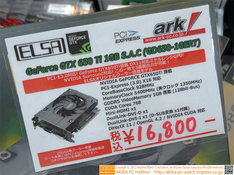 ELSA GeForce GTX 650 Ti 1GB S.A.C(GD650-1GERT)