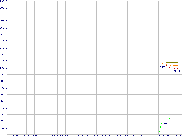 Core i3-3220T (2.8GHz,TDP 35W)の価格推移↑前グラフ↓次グラフ(2011年8月19日〜2012年10月31日)※このグラフは過去のデータも税率5%相当に調整した税込み相当額のグラフです。●関連グラフCPU主要製品の最安値推移CPU主要製品(最安値1万円未満)の最安値推移Intel系CPUの最安値推移LGA1155 (Smart Cache 3MB,Dual Core,GPU内蔵,Hyper-Threading)の最安値推移●凡例最安値(点線部は販売店未確認または未調査)平均値最高値ショップ数
