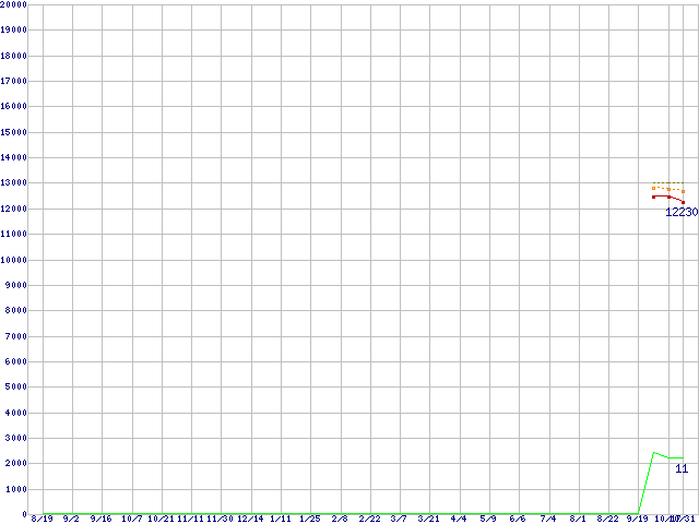 A10-5800K (3.8GHz,TDP 100W)の価格推移↑前グラフ↓次グラフ(2011年8月19日〜2012年10月31日)※このグラフは過去のデータも税率5%相当に調整した税込み相当額のグラフです。●関連グラフCPU主要製品の最安値推移CPU主要製品(最安値1万円〜2万円未満)の最安値推移AMD系CPUの最安値推移Socket FM2 (Cache 4MB,4Core,Radeon HD 7660D)の最安値推移●凡例最安値(点線部は販売店未確認または未調査)平均値最高値ショップ数