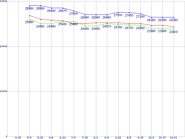| LGA1155 (Smart Cache 8MB,Quad Core,GPU内蔵,Hyper-Threading)の最安値推移 |