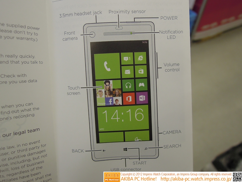 ![]() | AKIBA PC Hotline! [拡大画像]Windows Phone 8のスマホが初登場、直輸入品 / NFC搭載、デュアルコア 今週見つけた新製品:スマートフォン/タブレット端末 HTC Windows Phone 8X |