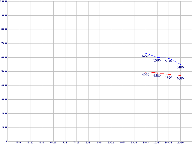 | ※製品名をクリックすると個別のグラフを表示します ※点線部は販売店が確認できなかった、または調査データがないことを示します |