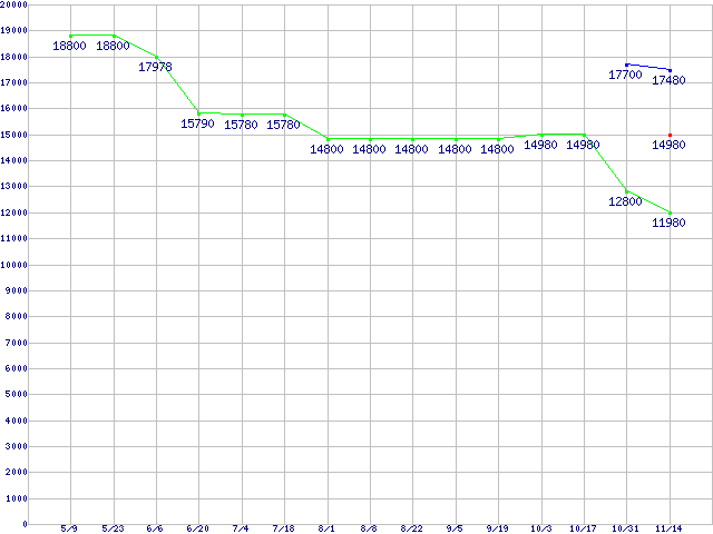 | Socket AM3+ (HyperTransport,8Core)の最安値推移 |