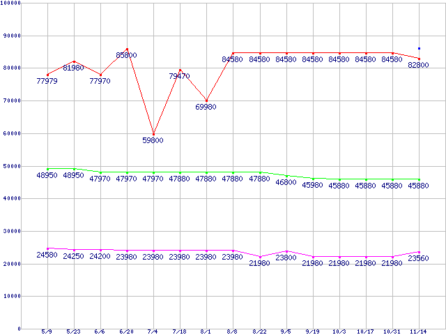 | ※製品名をクリックすると個別のグラフを表示します ※点線部は販売店が確認できなかった、または調査データがないことを示します | |