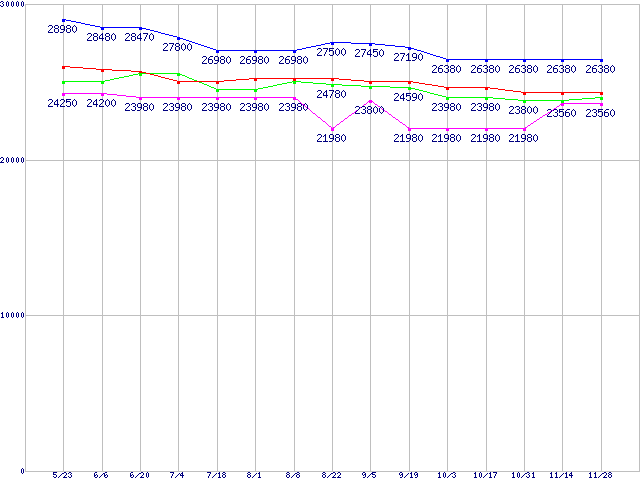 | CPU主要製品(最安値2万円〜3万円未満)の最安値推移 |