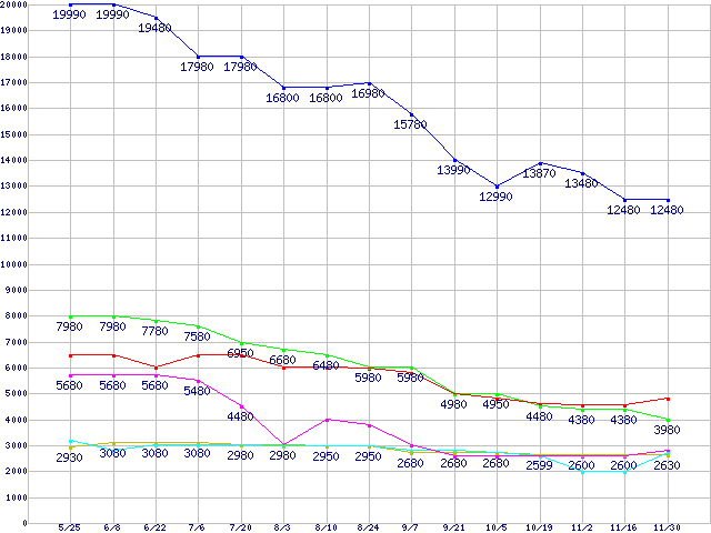 | ※製品名をクリックすると個別のグラフを表示します ※点線部は販売店が確認できなかった、または調査データがないことを示します | |