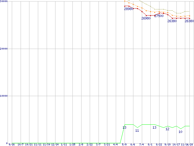 Core i7-3770K (3.50GHz,HD 4000,TDP 77W)の価格推移↑前グラフ↓次グラフ(2011年9月16日〜2012年11月28日)※このグラフは過去のデータも税率5%相当に調整した税込み相当額のグラフです。●関連グラフCPU主要製品の最安値推移CPU主要製品(最安値2万円〜3万円未満)の最安値推移Intel系CPUの最安値推移LGA1155 (Smart Cache 8MB,Quad Core,GPU内蔵,Hyper-Threading)の最安値推移●凡例最安値(点線部は販売店未確認または未調査)平均値最高値ショップ数