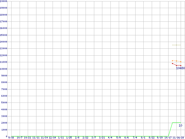 FX-4300 (3.8GHz,L2 4MB,L3 4MBTDP 95W)の価格推移↑前グラフ↓次グラフ(2011年9月16日〜2012年11月28日)※このグラフは過去のデータも税率5%相当に調整した税込み相当額のグラフです。●関連グラフCPU主要製品の最安値推移CPU主要製品(最安値1万円〜2万円未満)の最安値推移AMD系CPUの最安値推移Socket AM3+ (HyperTransport,4Core)の最安値推移●凡例最安値(点線部は販売店未確認または未調査)平均値最高値ショップ数