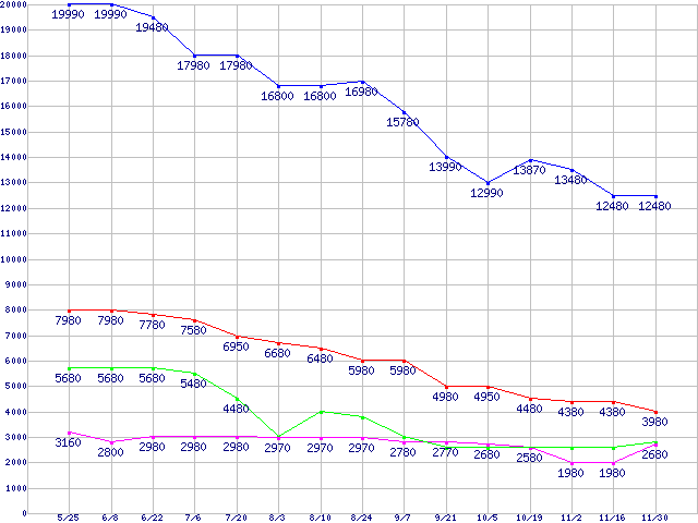| ※製品名をクリックすると個別のグラフを表示します ※点線部は販売店が確認できなかった、または調査データがないことを示します | |