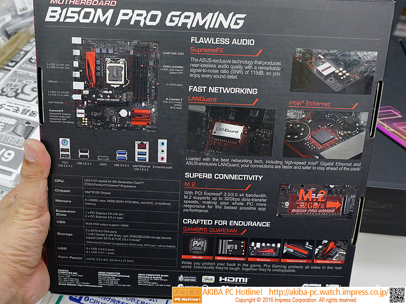 裏面が光るASUSのMini-ITXマザー「B150I PRO GAMING/AURA」が発売