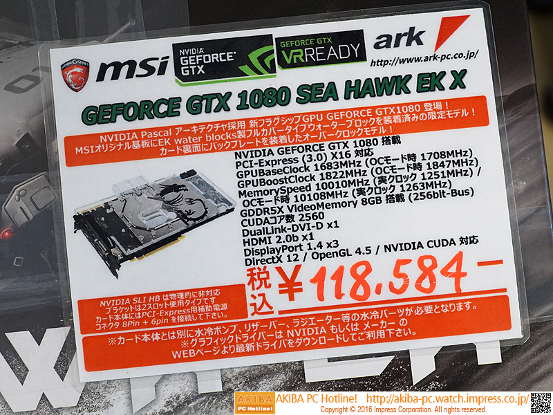 本格水冷対応の「GeForce GTX 1080 SEA HAWK EK X」が発売、税込12万円