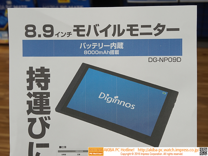 8.9型WUXGAのモバイル液晶「Diginnos DG-NP09D」が発売、税込19,980円