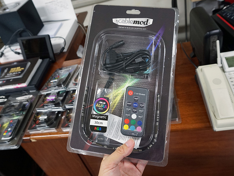 ASUSのイルミネーション機能対応のLEDストリップやカラフルなSATAケーブル