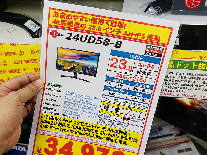 最安クラスの4K液晶「24UD58-B」がLGから登場、実売34,980円