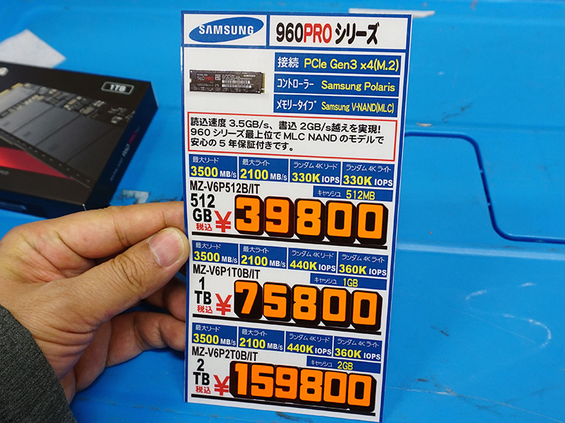 リード3,500MB/sのNVMe SSD「960 PRO」の2TBが販売スタート