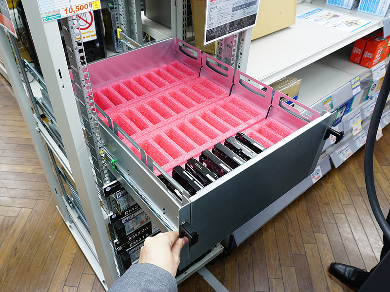 3.5インチHDDが40台収納できるラック用ドロワーが展示販売、ツクモ